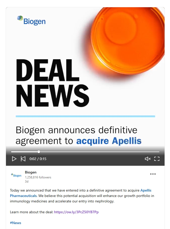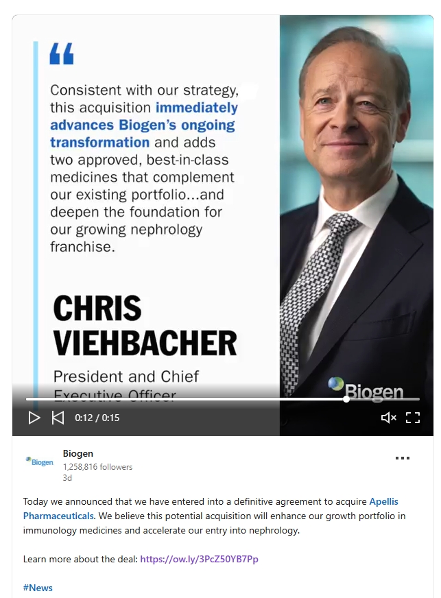 Stock or any other securities, nor is it a substitute for the tender offer materials that Biogen or Purchaser will file with the SEC. The terms and conditions of the tender offer will be published in, and the offer to purchase Apellis Common Stock